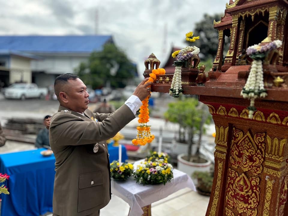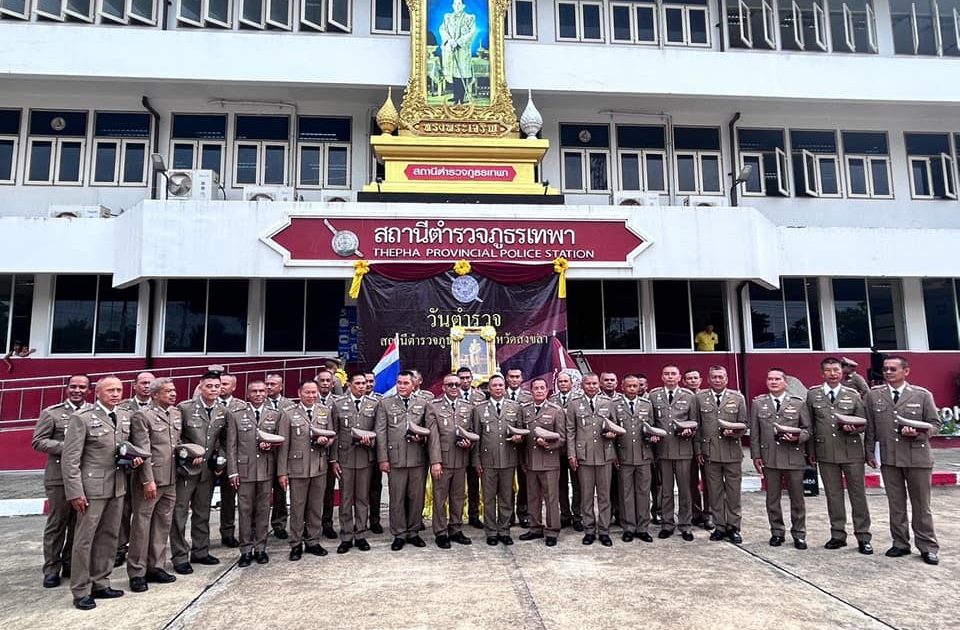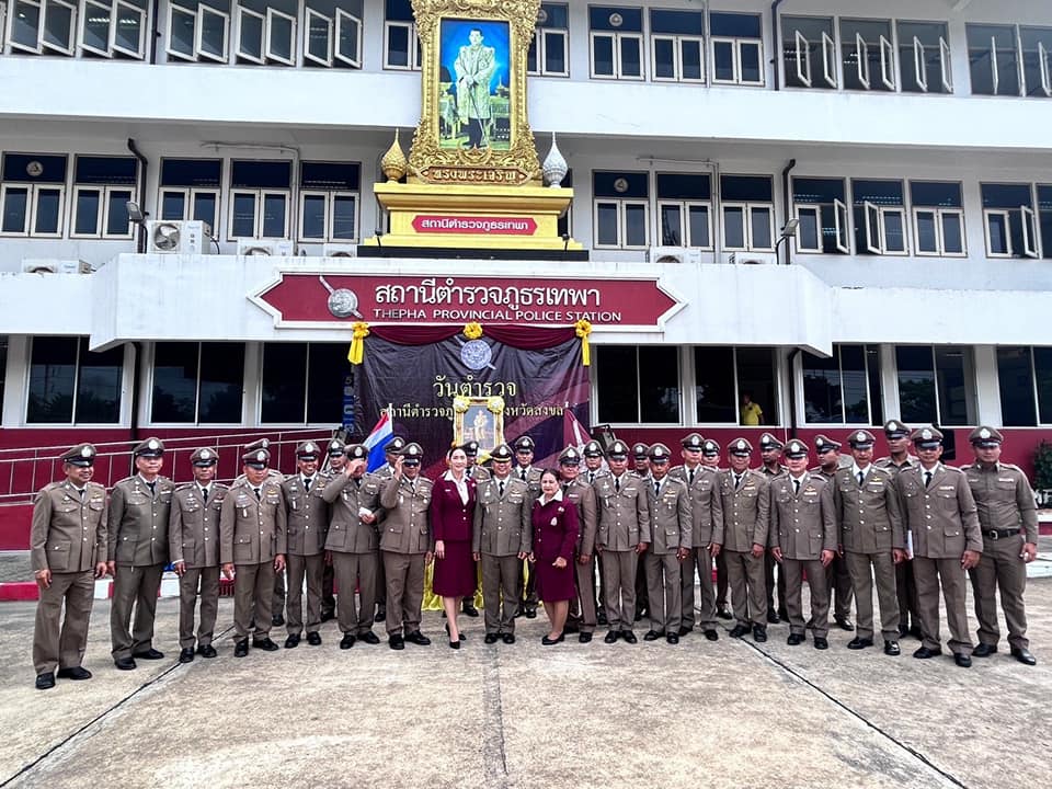 17 ตุลาคม วันตำรวจ 17 ตุลาคม 2566 โดย thepha / ข่าวประชาสัมพันธ์,ข่าวกิจกรรม เมื่อวันที่ 17 ต.ค. 2566 เวลา 07.00 น. พ.ต.อ.ธรรมรัตน์ เพชรหนองชุม ผกก.สภ.เทพา พร้อมด้วยข้าราชการ และแม่บ้านตำรวจ โดยมี นายเอกชัย แก้วรัตนะ นายอำเภอเทพา และนายสุรพัศ รัตนไชย อดีต ประธาน กต.ตร.สภ.เทพา ร่วมพิธีเนื่องในวันตำรวจ ประจำปี 2566 ยึดมั่นในเกียรติและหน้าที่ของผู้พิทักษ์สันติราษฎร์ เพื่อความผาสุขของประชาชน นำข้าราชการตำรวจร่วมพิธีบวงสรวงสักการะสิ่งศักดิ์สิทธิ์ประจำสถานีตำรวจภูธรเทพา , พิธีสงฆ์และพิธีทางศาสนาอิสลาม , พิธีบูชา พระพุทธรูป พระพุทธโรจนฤทธิ์(หลวงพ่อองค์ดำ) และพิธีบูชาศาลพระภูมิ เจ้าที่ เพื่อความเป็นสิริมงคล การอ่านสารของ พล.ต.อ.ต่อศักดิ์ สุขวิมล ผบ.ตร. เนื่องในวันตำรวจประจำปี 2566 , กล่าวคำสัตย์ปฏิญาณตน เพื่อให้ข้าราชการตำรวจทุกคน มุ่งมั่นตั้งใจปฎิบัติหน้าที่ เพื่อความสงบสุขและยึดถือประโยชน์ของประชาชนเป็นที่ตั้ง พร้อมมอบประกาศนียบัตรแก่ข้าราชการตำรวจผู้ปฏิบัติหน้าที่ดีเด่นประจำปี