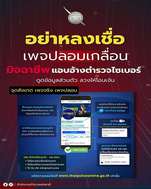 “สำนักงานตำรวจแห่งชาติ” เตือนภัยออนไลน์ ต้องเช็กก่อนเชื่อเพจเฟซบุ๊กปลอมเกลื่อนพล.ต.อ.ต่อศักดิ์ สุขวิ