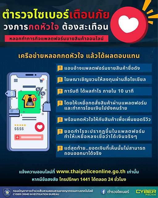 กดหัวใจให้ไม่ได้แปลว่าชอบ แต่อาจกำลังโดนหลอกอยู่ก็ได้ . มุกใหม่มิจฉาชีพ อ้างกดหัวใจรีวิวสินค้า หลอกใ