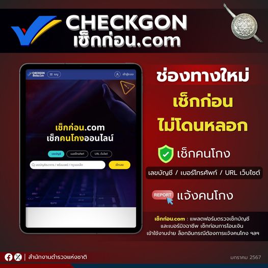 “เช็กก่อน” เว็บไซต์เช็กก่อนเชื่อ ไม่โดนหลอก ของขวัญปีใหม่จาก สำนักงานตำรวจแห่งชาติ อัปเดตช่องทางใหม่