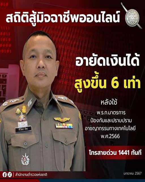 ตร. เผย สถิติอายัดเงินทัน สูงขึ้น 6 เท่า! หลัง พ.ร.ก.มาตรการป้องกันและปราบปรามอาชญากรรมทางเทคโนโลยี