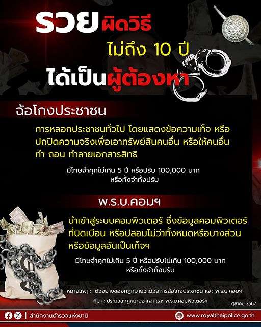 รวยผิดวิธี ไม่ถึง 10 ปี ได้เป็นผู้ต้องหา . “สำนักงานตำรวจแห่งชาติ” ห่วงใย ไม่แนะนำให้รวย