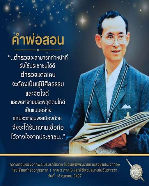 “..ตำรวจจะสามารถทำหน้าที่ รับใช้ประชาชนได้ดี ตำรวจแต่ละคนจะต้องเป็นผู้มีศีลธรรม และจิตใจดี และ