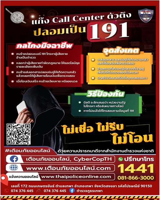 📢 แก๊ง Call Center ปลอมเป็น 191