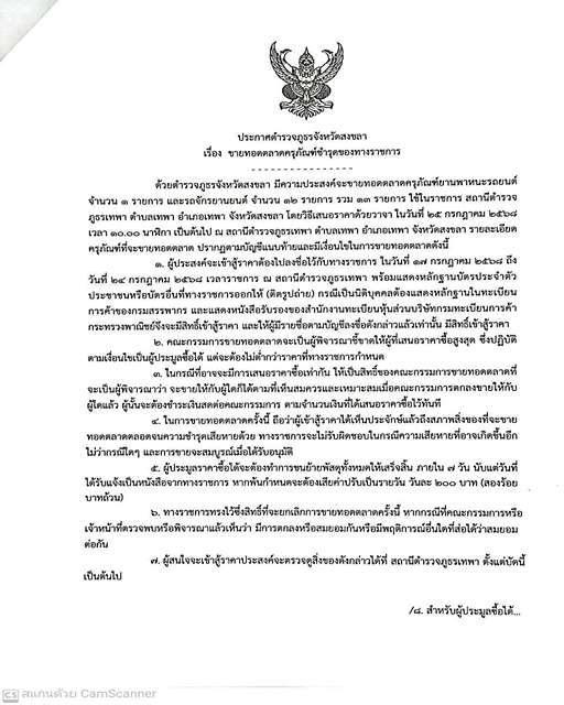 ด้วย สภ.เทพา ดำเนินการขายทอดตลาด รถจักรยานยนต์ จำนวน 12 คัน และรถยนต์ จำนวน 1 คัน บุคคลที่สนใจ ลงทะเ
