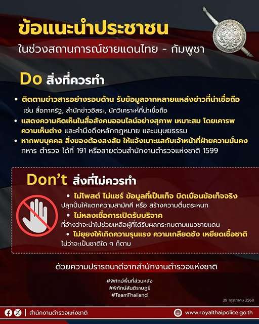 #ไทยกัมพูชา สิ่งที่ควรทำ ( Do ) 1. ให้ประชาชนติดตามข่าวสารอย่างรอบด้าน รับข้อมูลจากหลายแหล่งข่าวที่น