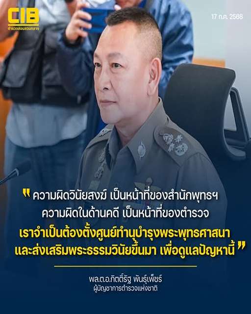 “ หน้าที่ตำรวจ ” คือ การปกป้องสถาบัน ชาติ ศาสนา พระมหากษัติรย์ เมื่อมีพระภิกษุสงฆ์กระทำผิดวินั