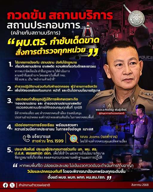 ผบ.ตร.กำชับเด็ดขาด สั่งการตำรวจทุกหน่วย กวดขันสถานบริการ สถานประกอบการ (คล้ายกับสถานบริการ) . 1. ใช้