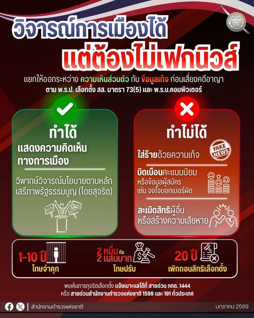 วิจารณ์การเมืองได้ แต่ต้องไม่สร้างเฟกนิว ใส่ร้ายด้วยความเท็จ แยกให้ออกระหว่างการแสดงความคิดเห็นส่วนต