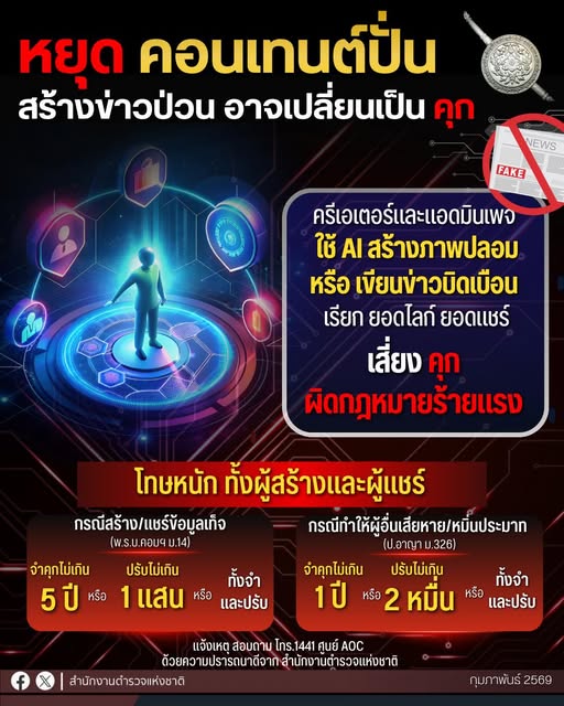 หยุด สร้างคอนเทนต์ปั่น สร้างข่าวปลอม สร้างข่าวป่วน ใช้ AI ผิดวิธี เรียกยอดไลก์ สร้างกระแส ใช้ AI สร้