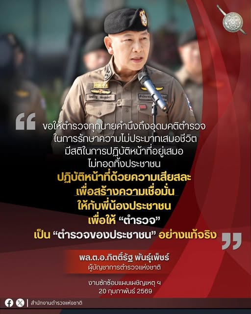 “.. ขอให้ตำรวจทุกนายคำนึงถึงอุดมคติตำรวจ ในการ “ รักษาความไม่ประมาทเสมอชีวิต ” มีสติในการปฏิบัติหน้า