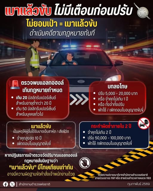 “ เมาแล้วขับ ” อันตรายต่อตนเองและผู้อื่น ตำรวจจับกุม ดำเนินคดีทันที ไม่เข้าข่าย “ เตือนก่อนปรับ ” .