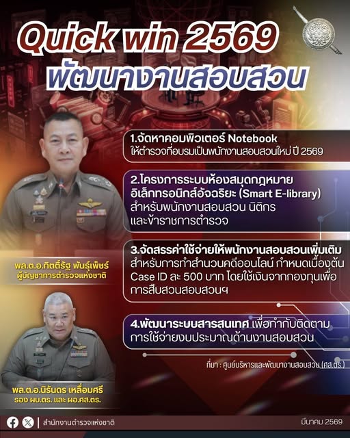 ผบ.ตร. สั่งทำทันที 4 เรื่อง “เครื่องมือ-คลังกฎหมาย-เงินเพิ่ม-ระบบบริหารงบประมาณ” พัฒนางานสอบสวนตำรวจ