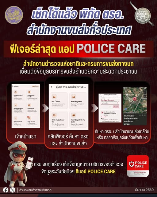 ฟีเจอร์ใหม่เพื่อคนใช้รถ “ สำนักงานตำรวจแห่งชาติ ” เชื่อมข้อมูล “ ขนส่ง ” แค่คลิก เช็กพิกัด ตรอ. R