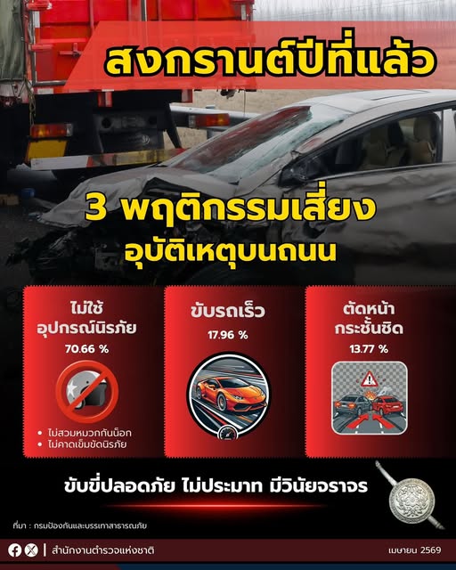 เปิด 3 พฤติกรรมเสี่ยง อุบัติเหตุ – การสูญเสีย ที่เกิดขึ้นบนท้องถนน ในช่วงเทศกาลสงกรานต์ปีที่แล