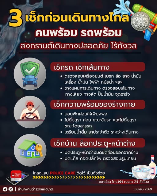 3 เช็กก่อนเดินทาง #สงกรานต์2569 สงกรานต์ปีนี้ เตรียมพร้อมก่อนเดินทางไกล ท่องเที่ยว กลับไปหาครอบครัว