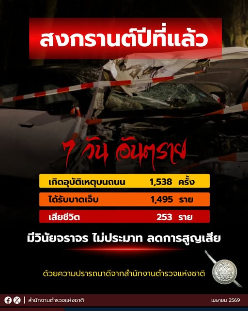 เริ่มแล้ว 7 วันควบคุมเข้มข้น สงกรานต์ปลอดภัย 10-16 เมษายน ร่วมลดอุบัติเหตุ ลดการสูญเสีย ” ขับข