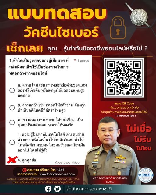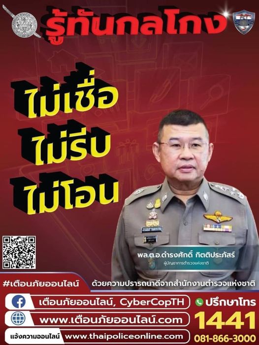 ” ไม่เชื่อ ไม่รีบ ไม่โอน “ ปลอดภัยจากโจรออนไลน์ ด้วยความปรารถนาดีจาก “สำนักงานตำรว