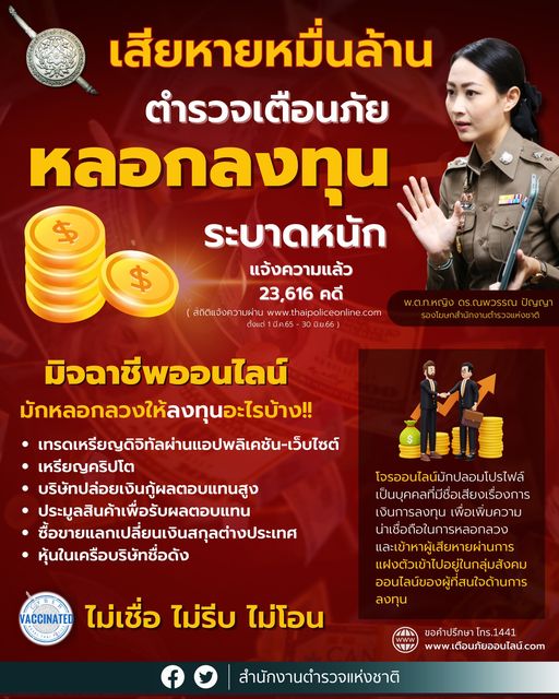 หลอกลงทุนระบาดหนัก!! รองโฆษก ตร. เตือนภัย เผยยอดความเสียหายรวมสูงกว่าหมื่นล้านบาท ย้ำต้องมีสติ “ไม่เ