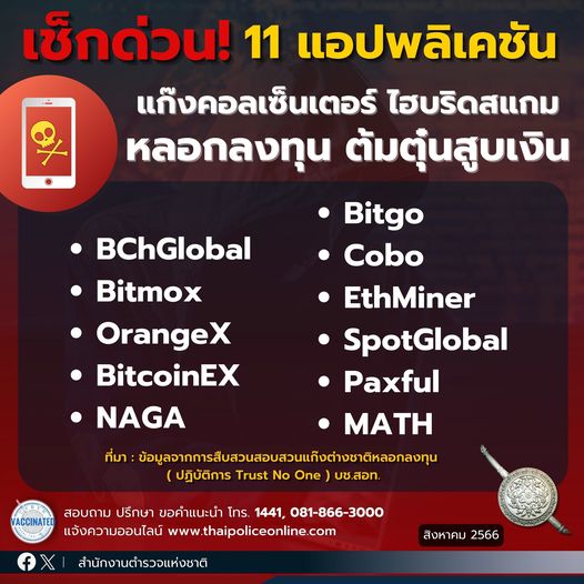 เคยลงทุนเงินดิจิทัล เทรดทอง เทรดเหรียญ ใน 11 แอปพลิเคชัน เหล่านี้หรือไม่ หากท่านมีผู้ชักชวนลงทุน เก็