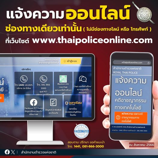 ที่เว็บไซต์ www.thaipoliceonline.com กรณีตกเป็นเหยื่อเกี่ยวกับการหลอกลวงทางออนไลน์ ทางโทรศัพท์ อาชญา