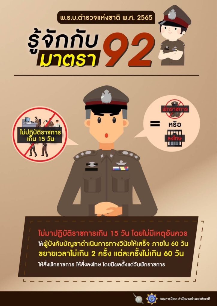 ตาม พ.ร.บ.ตำรวจแห่งชาติ พ.ศ. 2565 มาตรา 51 , 92 และ 125
